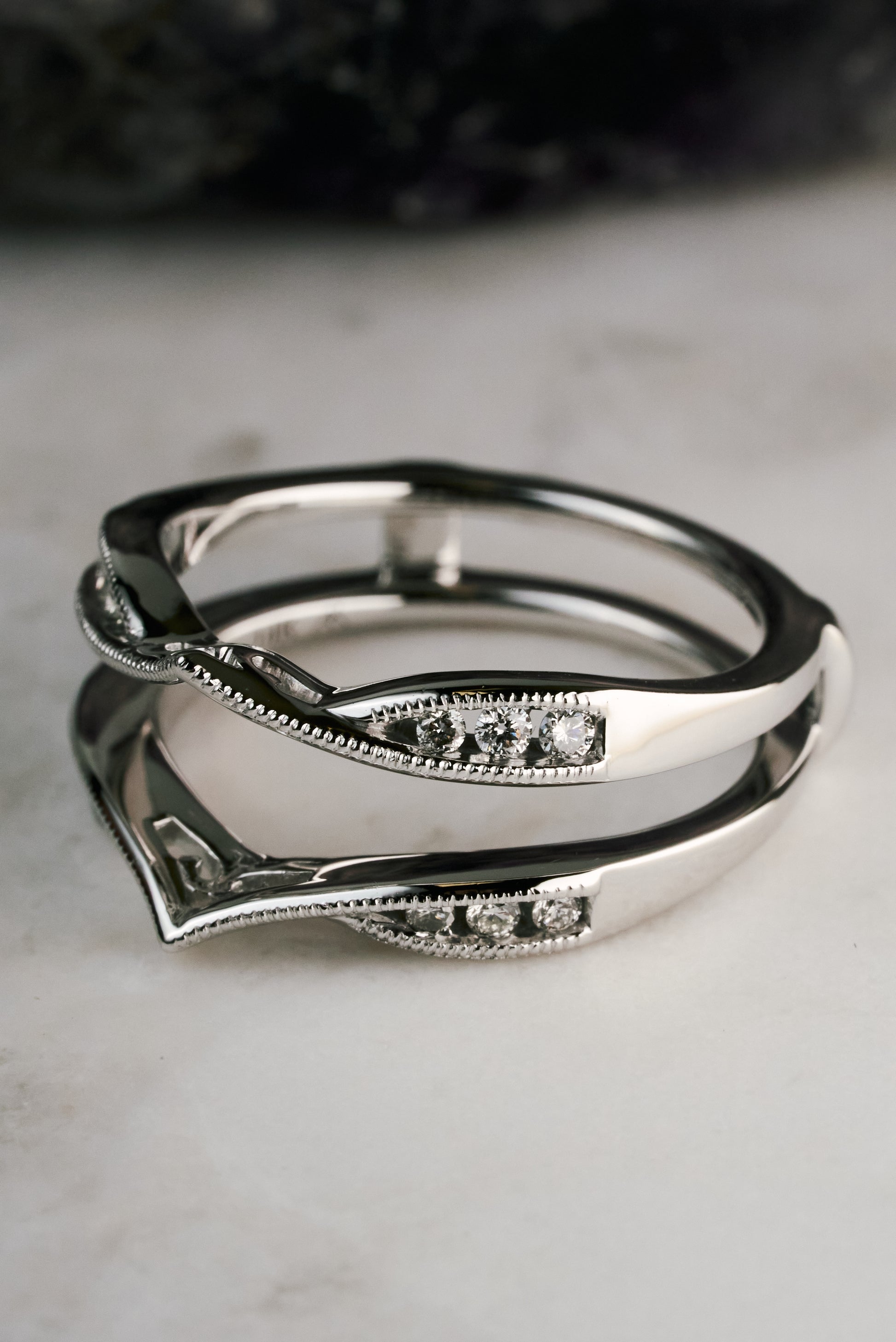 Accented diamond ring guard