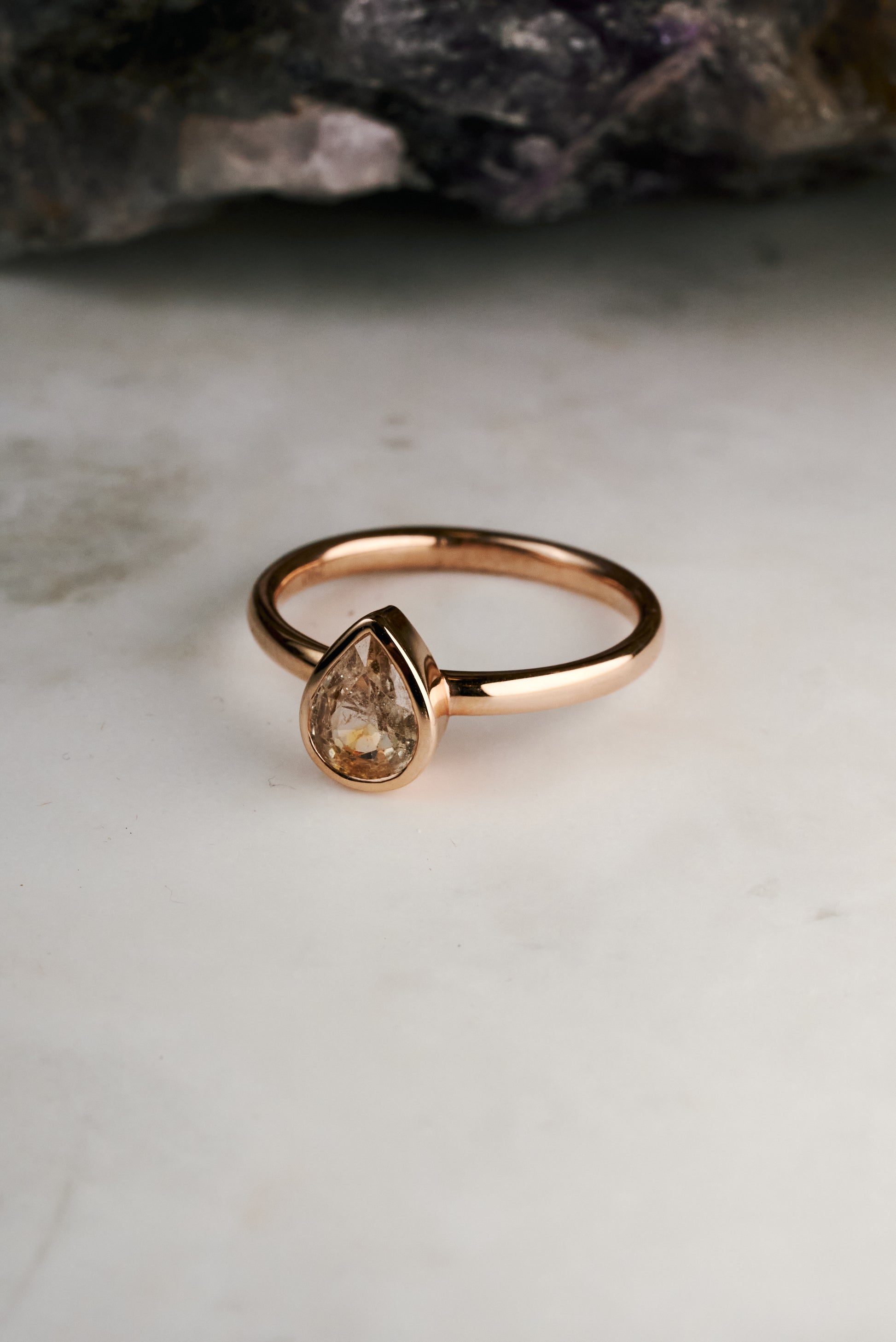 The Hawthorn with Bezel-Set Pear Peach Sapphire